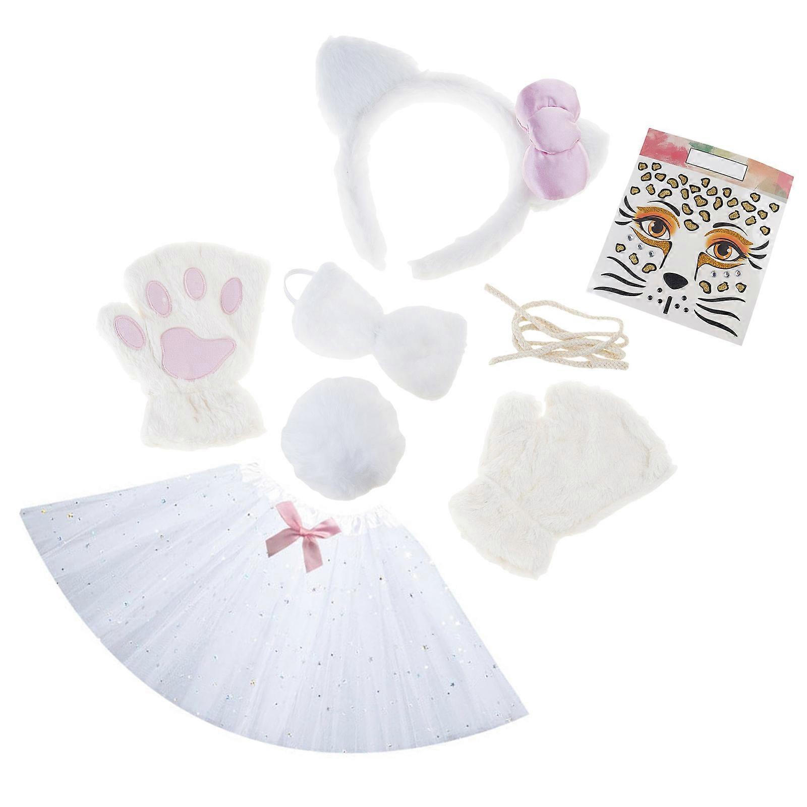 4/6 Animal Panda Costumes Accessories Panda Ears Headband Tail Bows Face Sticker for Kids Halloween Cosplay Party Props White Panda