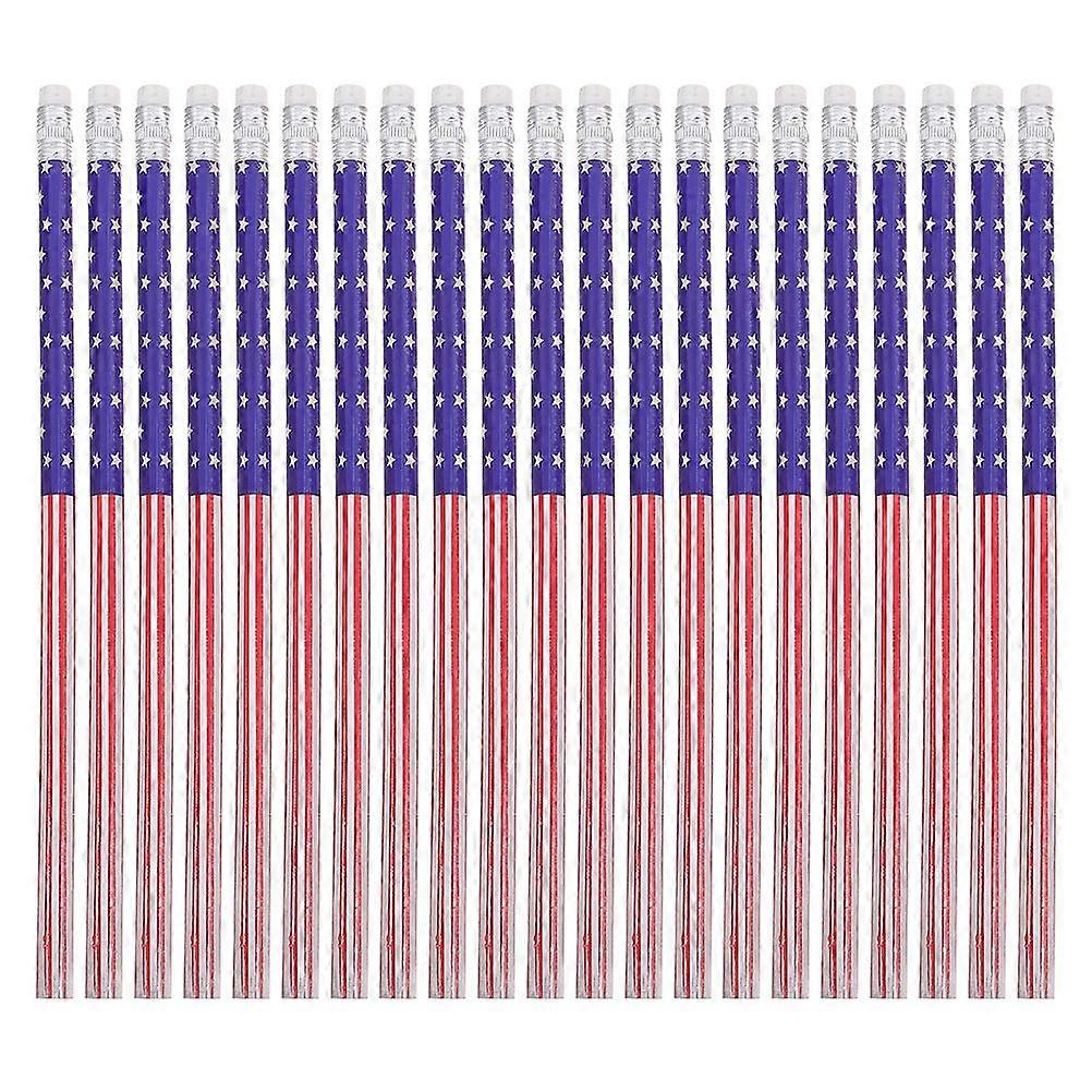 48pcs Wood Pencils Bulk American Flag Pencils with Erasers Pencil for July of 4th Day American Party Soldiers Christmas Party Office School Supplies