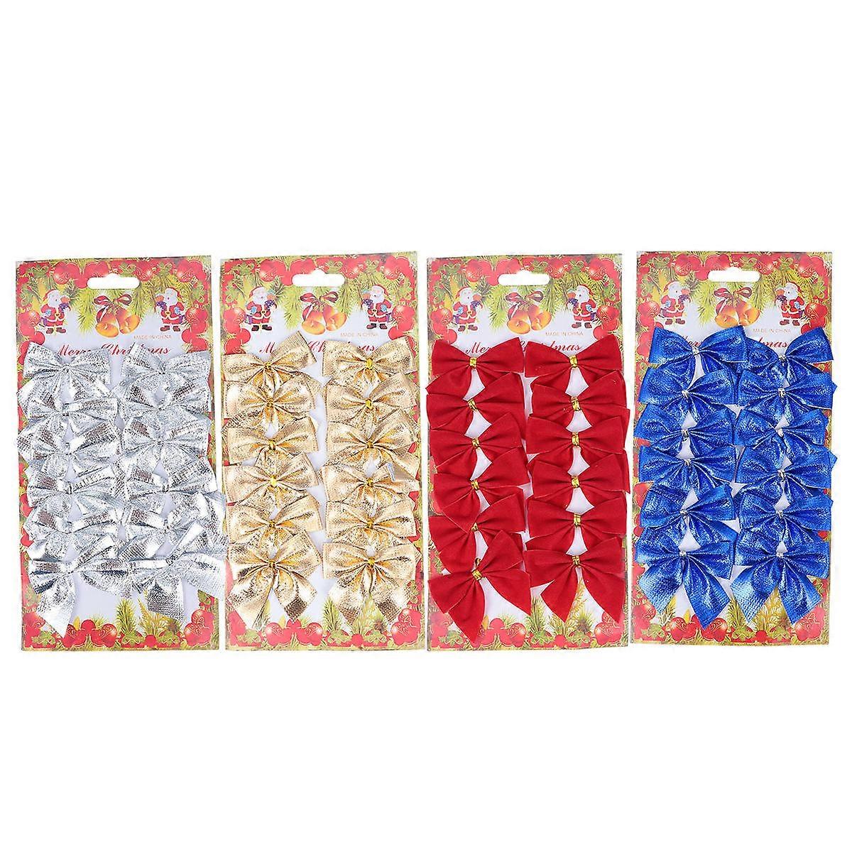 48pcs Christmas Bowknot Ornaments Red, Gold, Silver, Blue Decorative Hanging Bows for Tree, Jewelry Box & Rack Decoration Festive Holiday Craft
