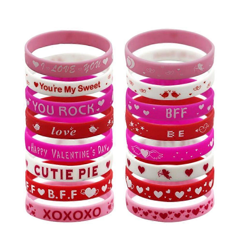 48pcs Valentine's Day Bracelet Wristbands Party Hand Decoration Small Presents Party Supplies for Festival (Random Mixed)