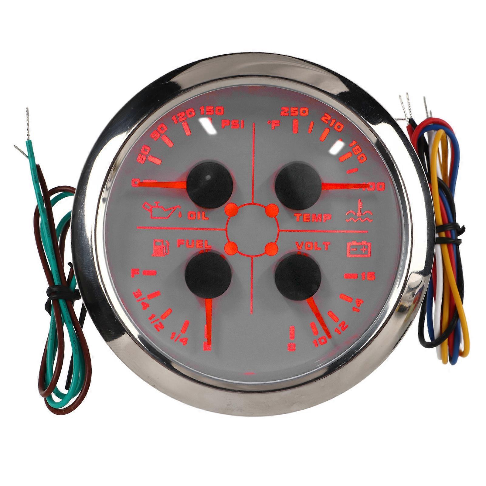 4in1 85mm Guage Multifunction Fuel Level Oil Pressure Water Temp Volt Meter DC 932V for Car RV Boat Motorcycle White Silver /PSI NO.77993