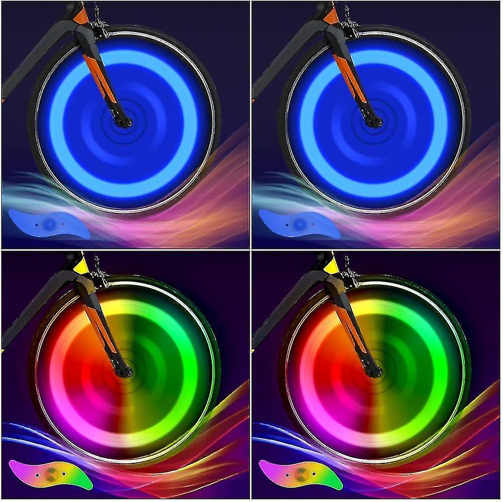 4pcs Bicycle Wheel Lightscolorful + Blue, Bike Led Wheel Lights With 3 Flashing Modes, Waterproof Led Lamp Neon Tire Spoke Light Wheel Spokes Cycling