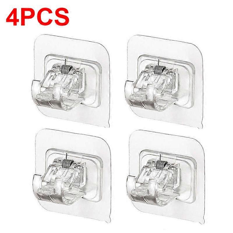 4PCS Nail-Free Hooks Curtain Rod Holder Clamp Hooks Rod Bracket Holder Adjustable Adhesive Wall Curtain Fixed Clip Hanging Rack