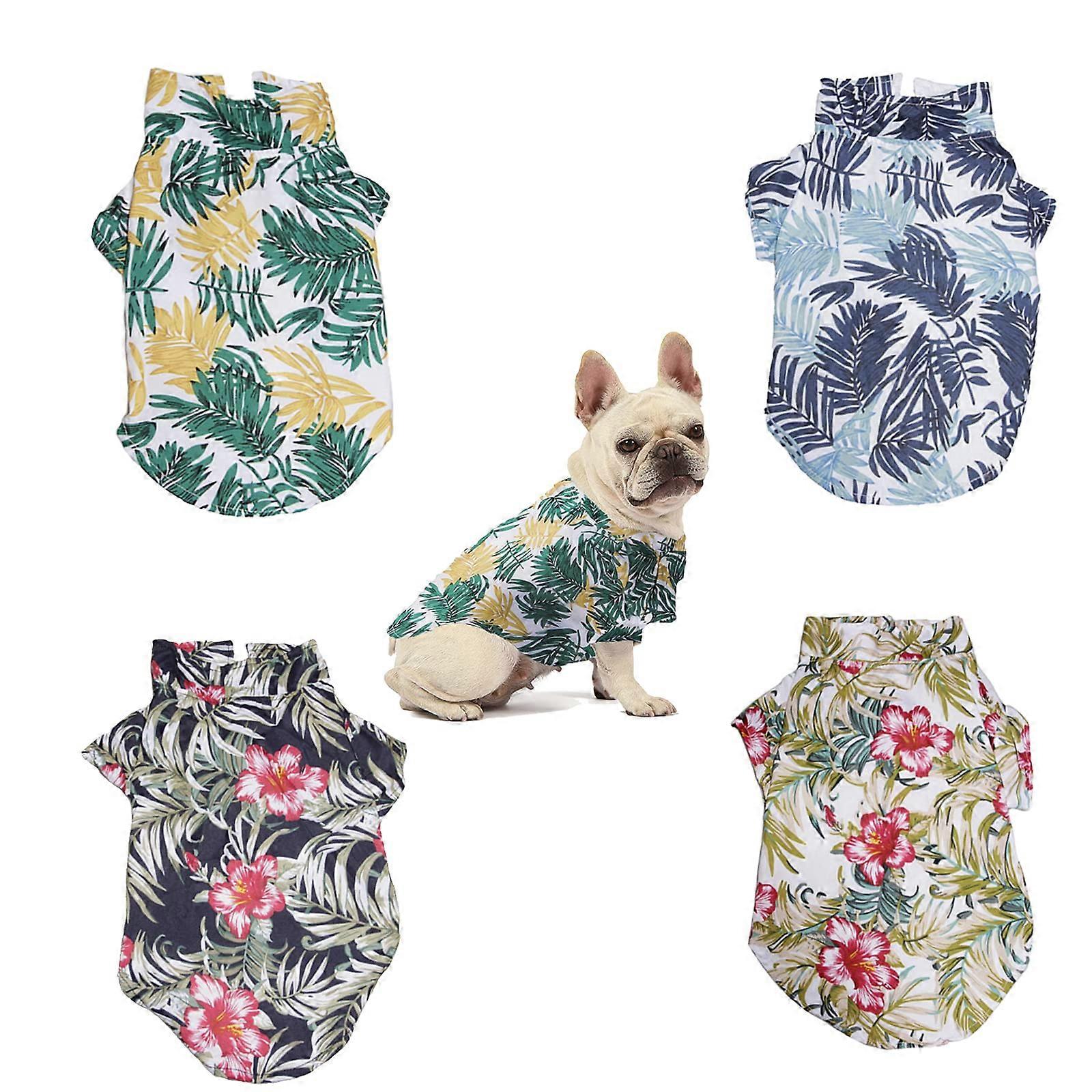 4pcs Hawaiian Dog Shirt Summer Breathable Pet Clothes Dog Sweatshirts Cool Coconut Tree Pineapple Beach Dog Shirts for Small Medium Large Dog Cat Boy