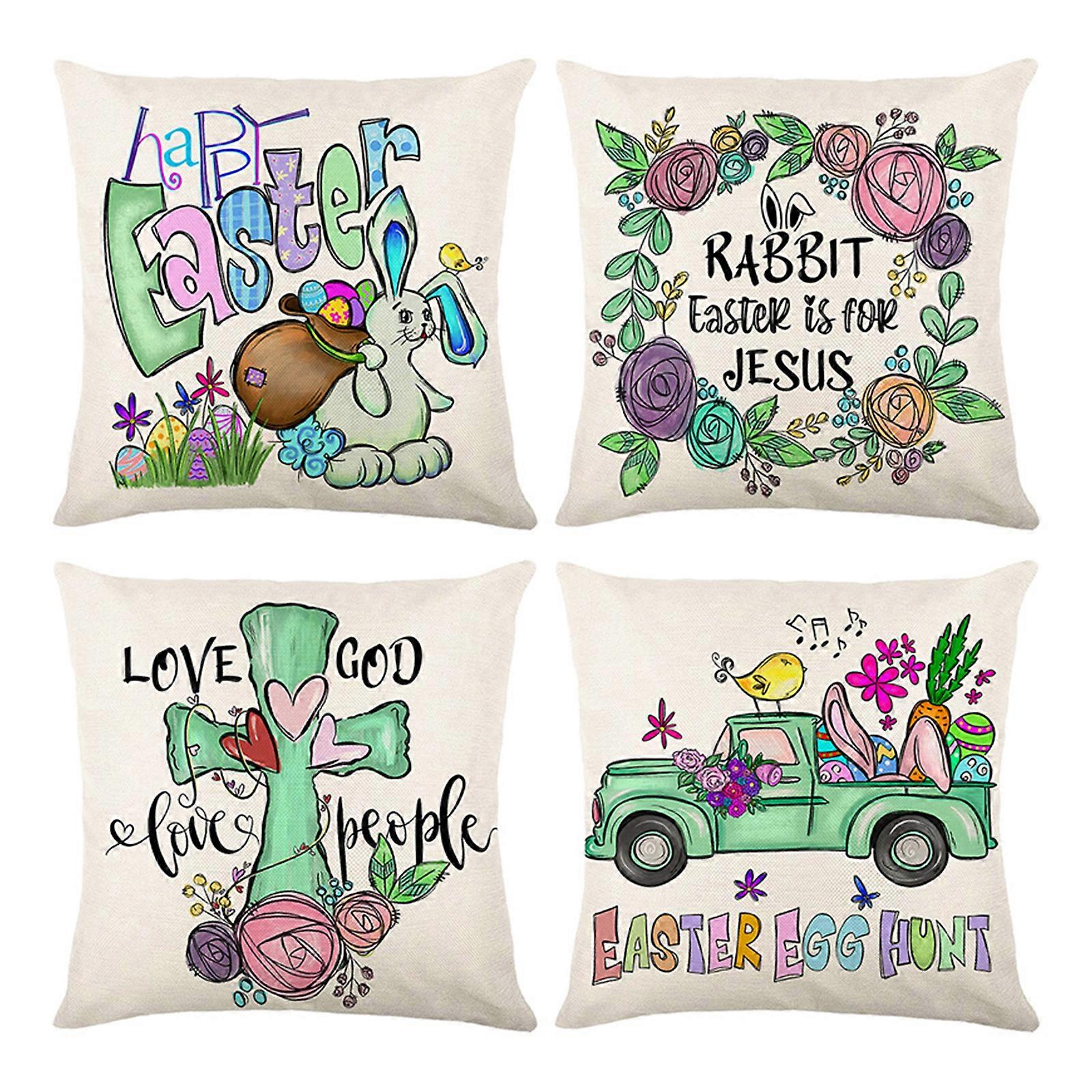 4pcs Easter Pillow CoversEaster Flower Rabbit Cushion Cover Linen 17.7*17.7 inch