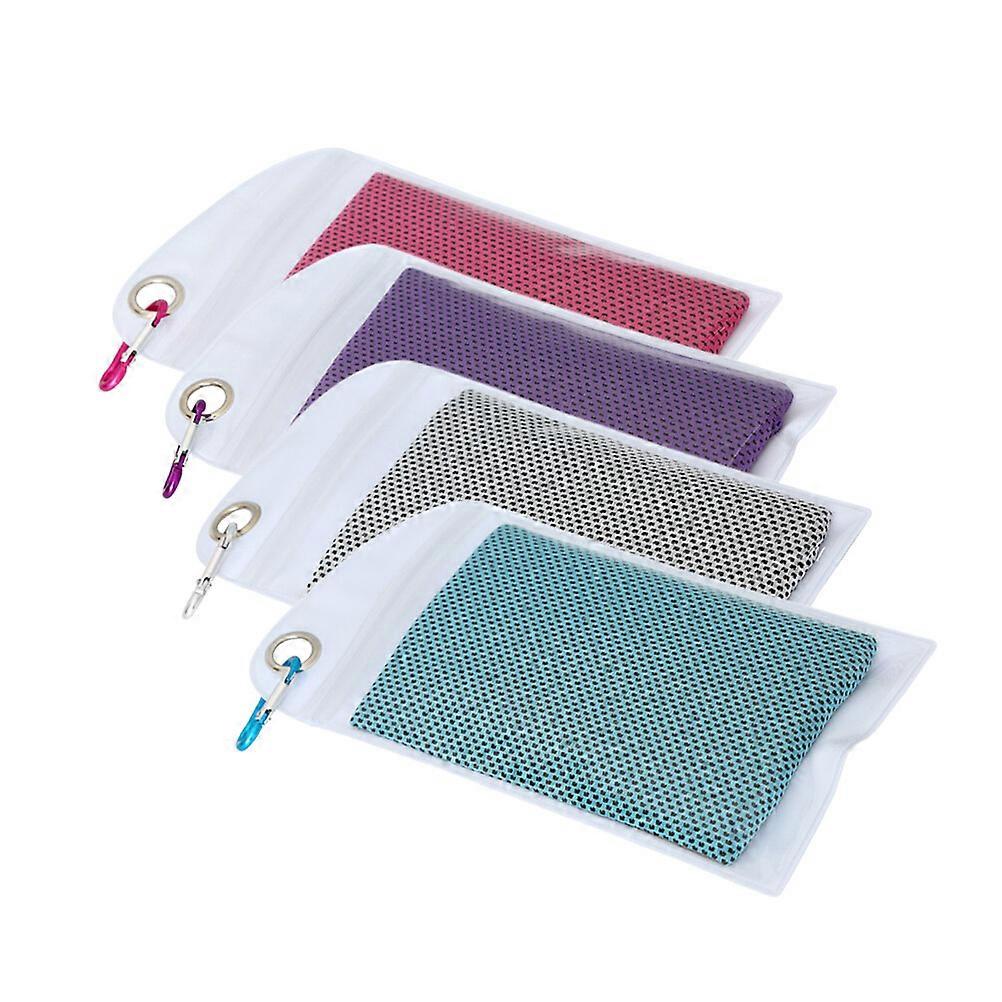 4pcs Quick Dry Sports Towel Cooling Fitness Microfiber Towel for Running Camping Yoga Gym Grey and Blue and Rosy and Purple