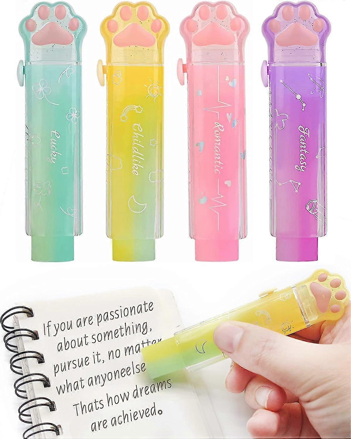 4pcs Sliding Retractable Pencil Erasers With Cat Paw Plastic Sleeve Cute Jelly Erasers For School Office Clean Erase Erasers For Kids(gradient Color)