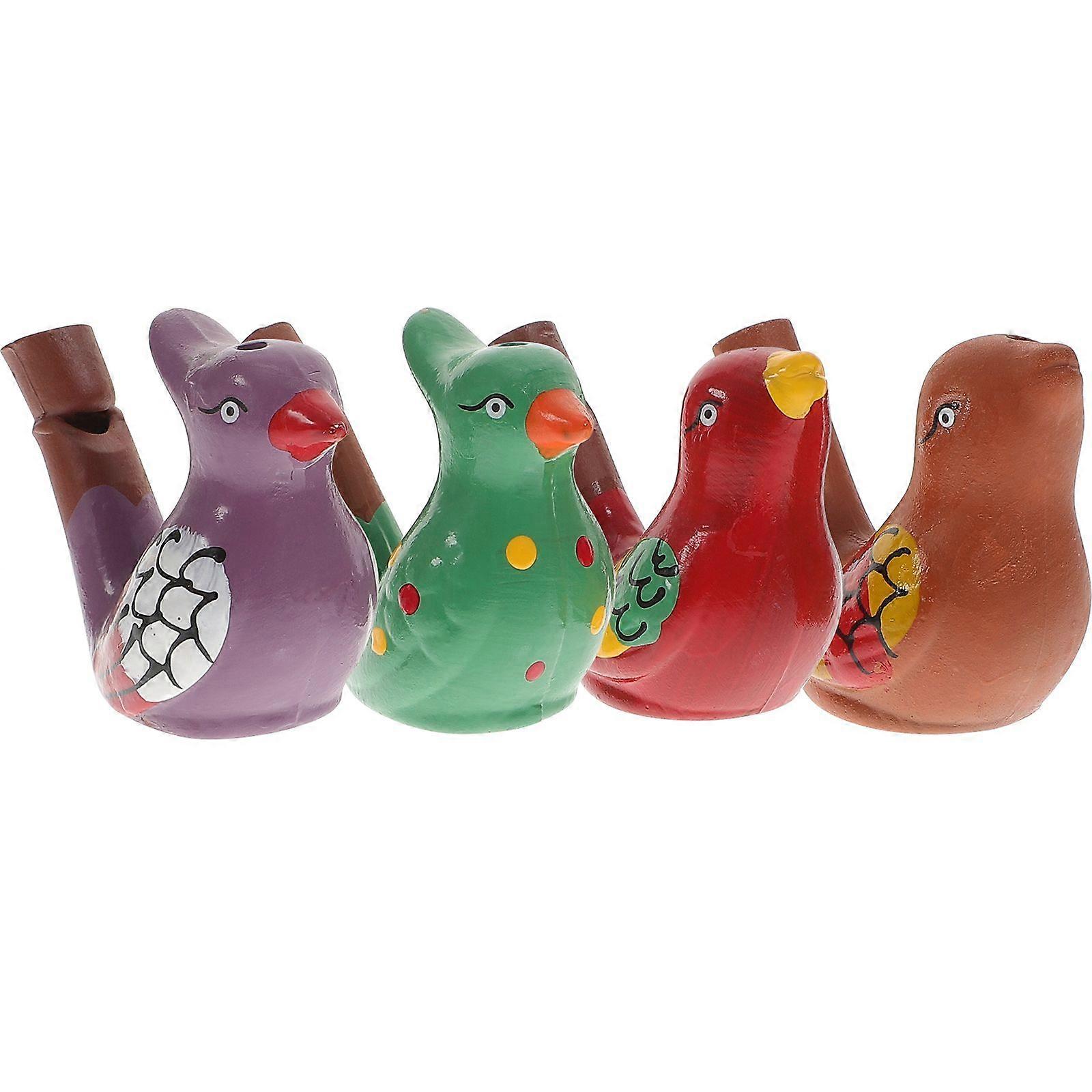 4pcs Creative Water Bird Whistle Colored Drawing Warbler Song Ceramic Chirps Baby Bathtime Musical Toys for Kids (Random Style)