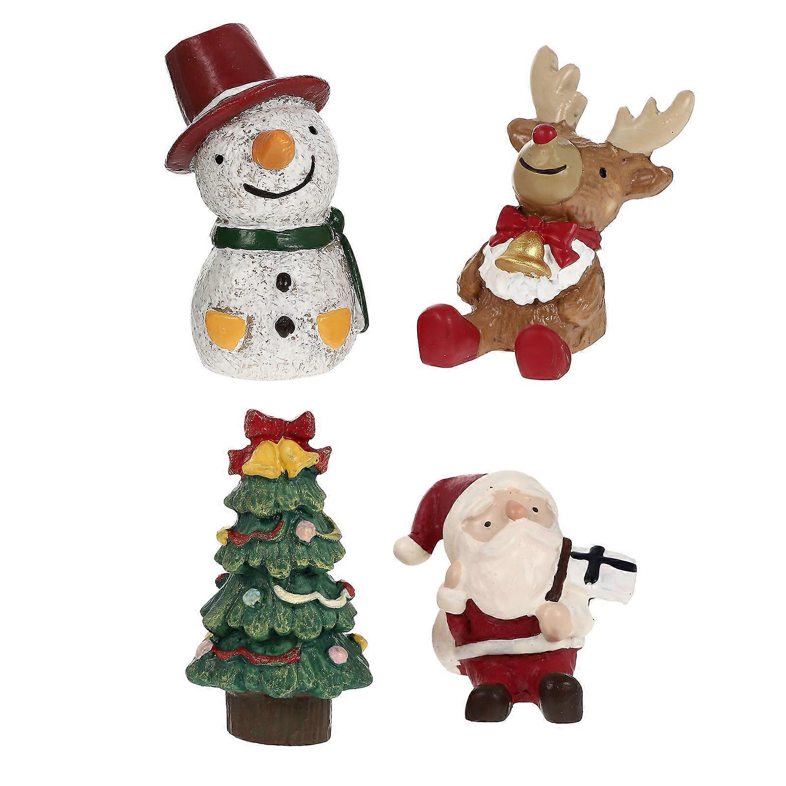4pcs Mini Christmas Adornments Resin Micro Landscape Xmas Reptile Tank Decor