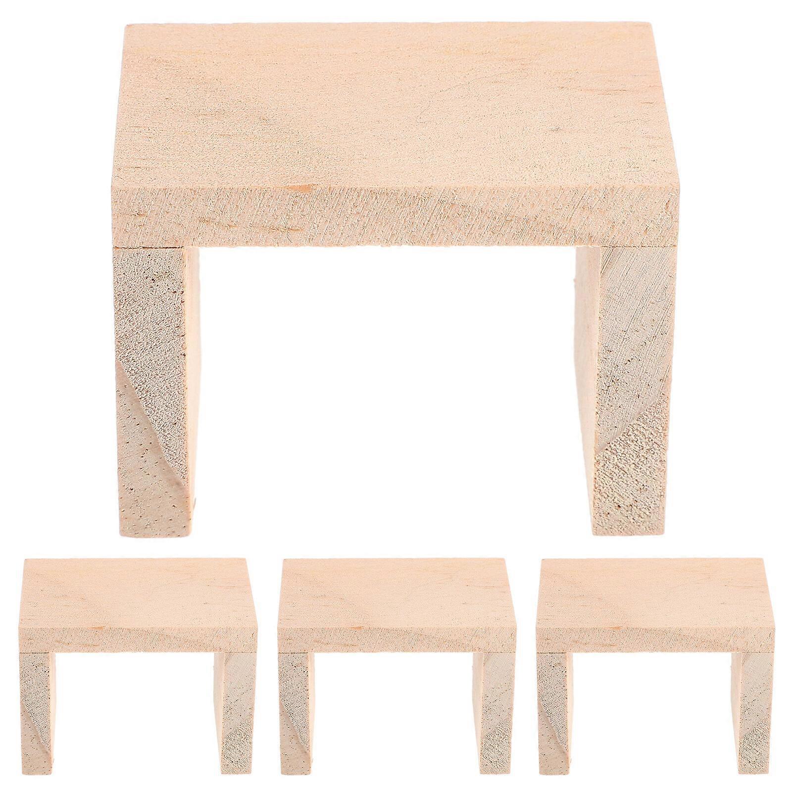 4pcs Mini Furniture Wood Stool Simulation Stool Miniature House Ornament