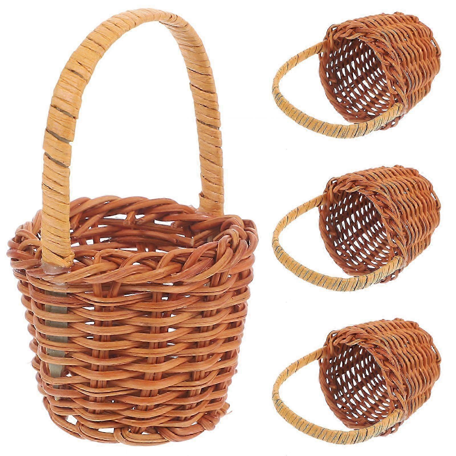4pcs Mini Woven Baskets Miniature Flower Basket Mini Picnic Basket Mini Rattan Baskets