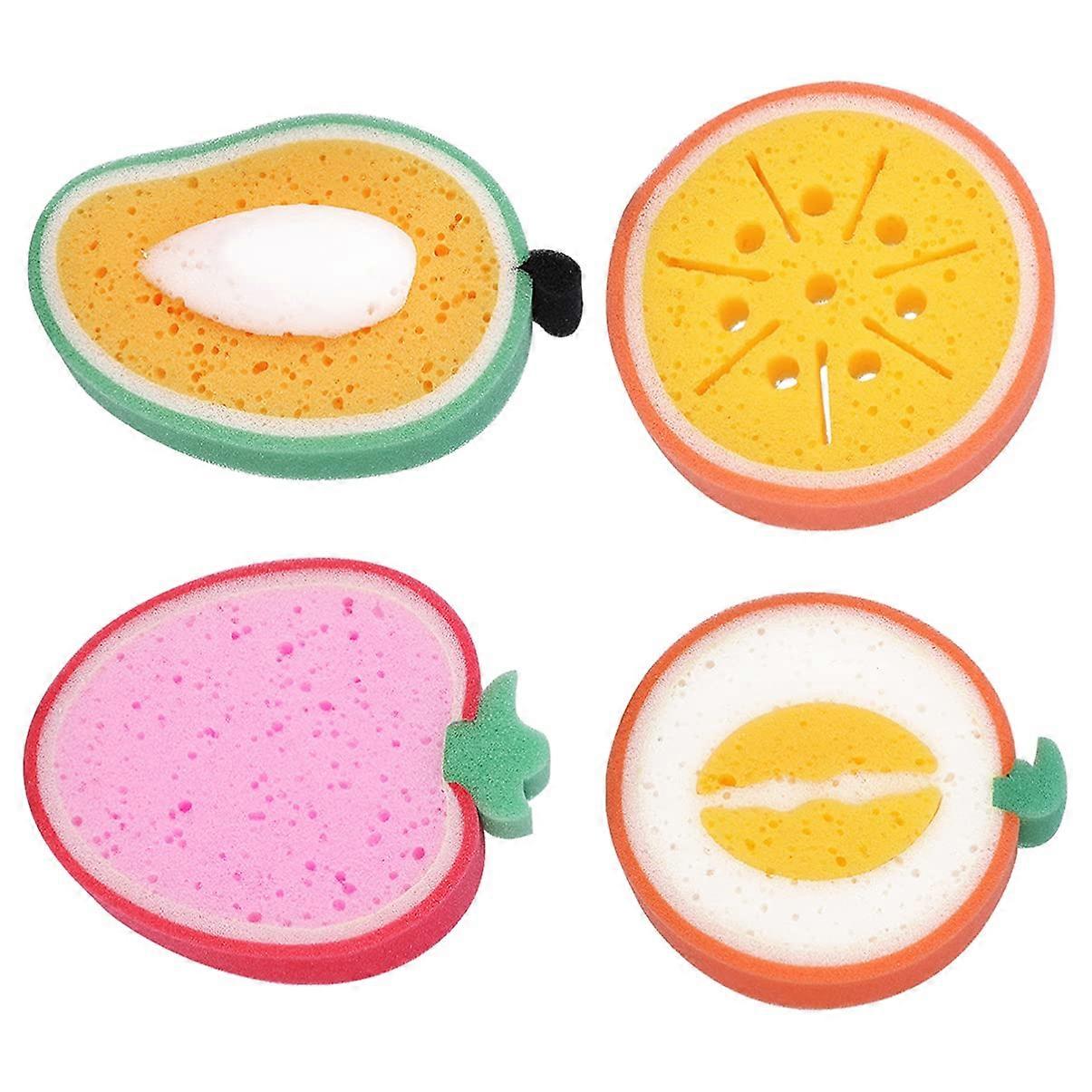 4pcs Baby Bath Sponge Soft Foam Scrubber Natural Sponge for Bathing, Shower Scrubber Fruit Body Sponge