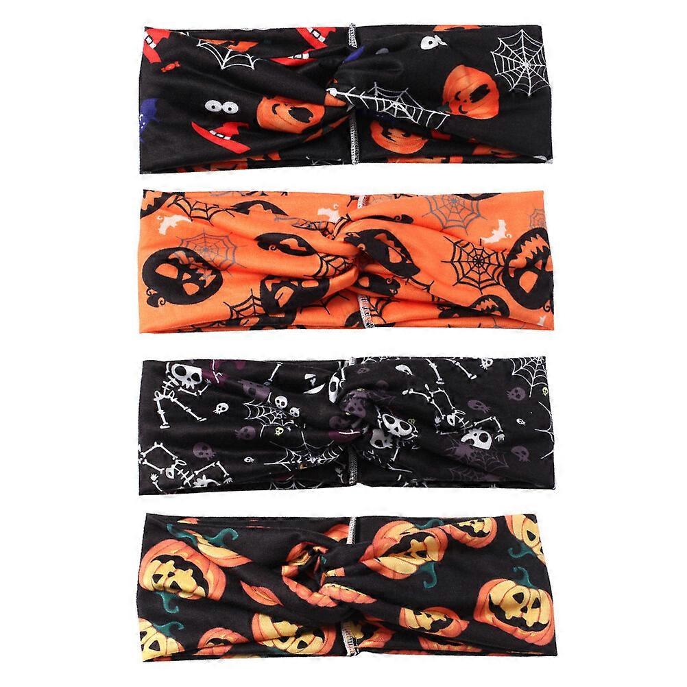 4pcs Halloween Headband Elastic Knotted Headband Head Wrap for Women Girls