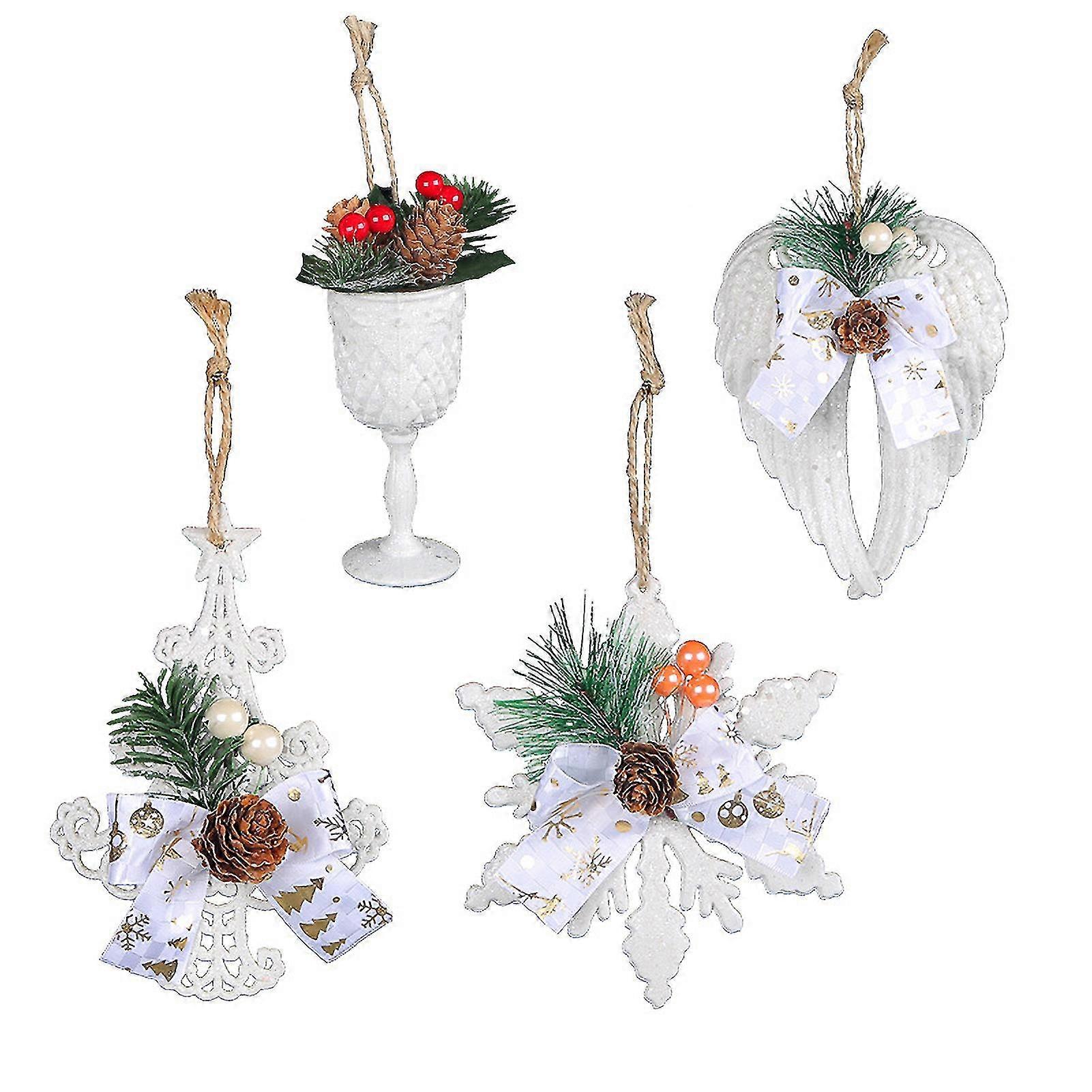 4pcs Christmas Tree Pine Cones Ornaments Snowflake Angel Wing Wine Glass Berry Winter Wonderland Pendant Crafts