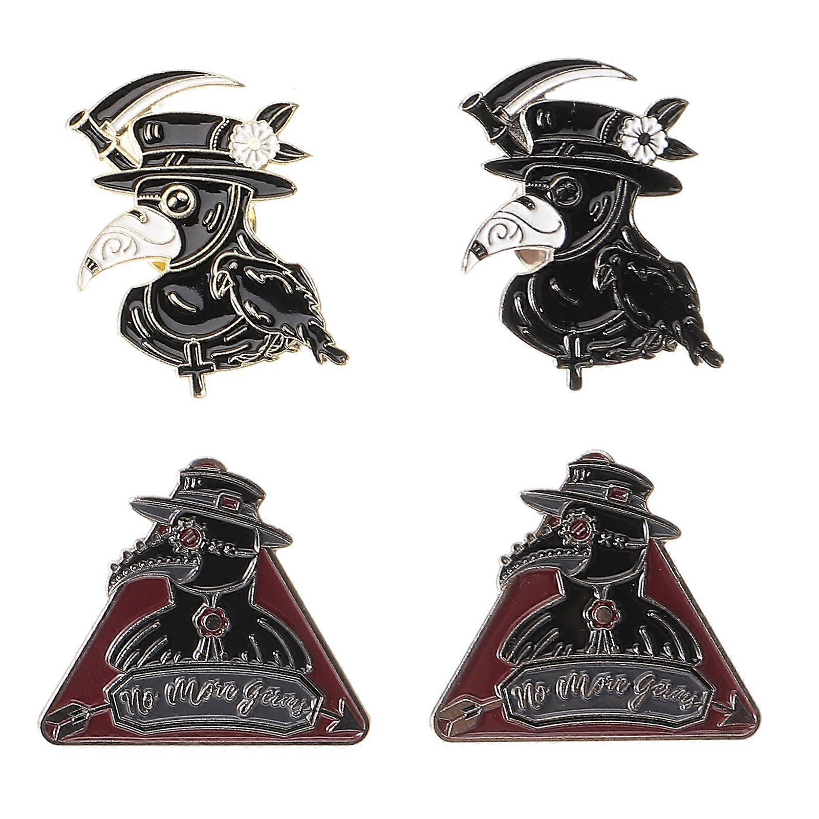4pcs Punk Crow Brooch Plague Doctor Bird Bill Crow Series Brooch Cowboy Badge