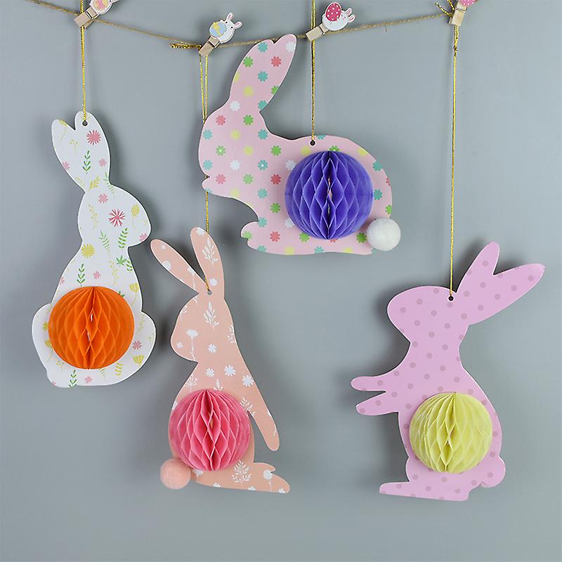 4pcs Colorful Hanging Paper Bunny Decora Honeycomb Rabbit Garlands For Easter Party Birthday Wedding Baby Shower Decor Supplies