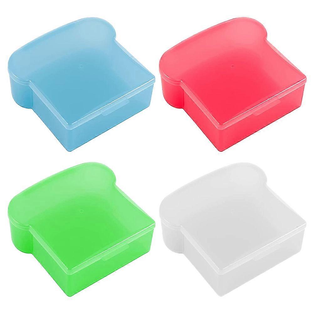 4pcs Plastic Bread Toast Storage Box Clamshell-type Bento Holder Practical Food Container