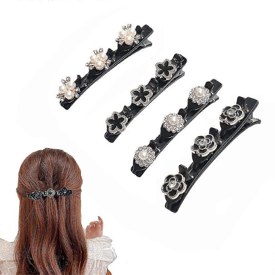 4pcs Crystal Hairpin Flower Hair Clips,sectioning Hair Clips, Satin Fabric Hair Bands,floral Hairpin Duckbill Clip For Hair Styling Hair Styling,hair