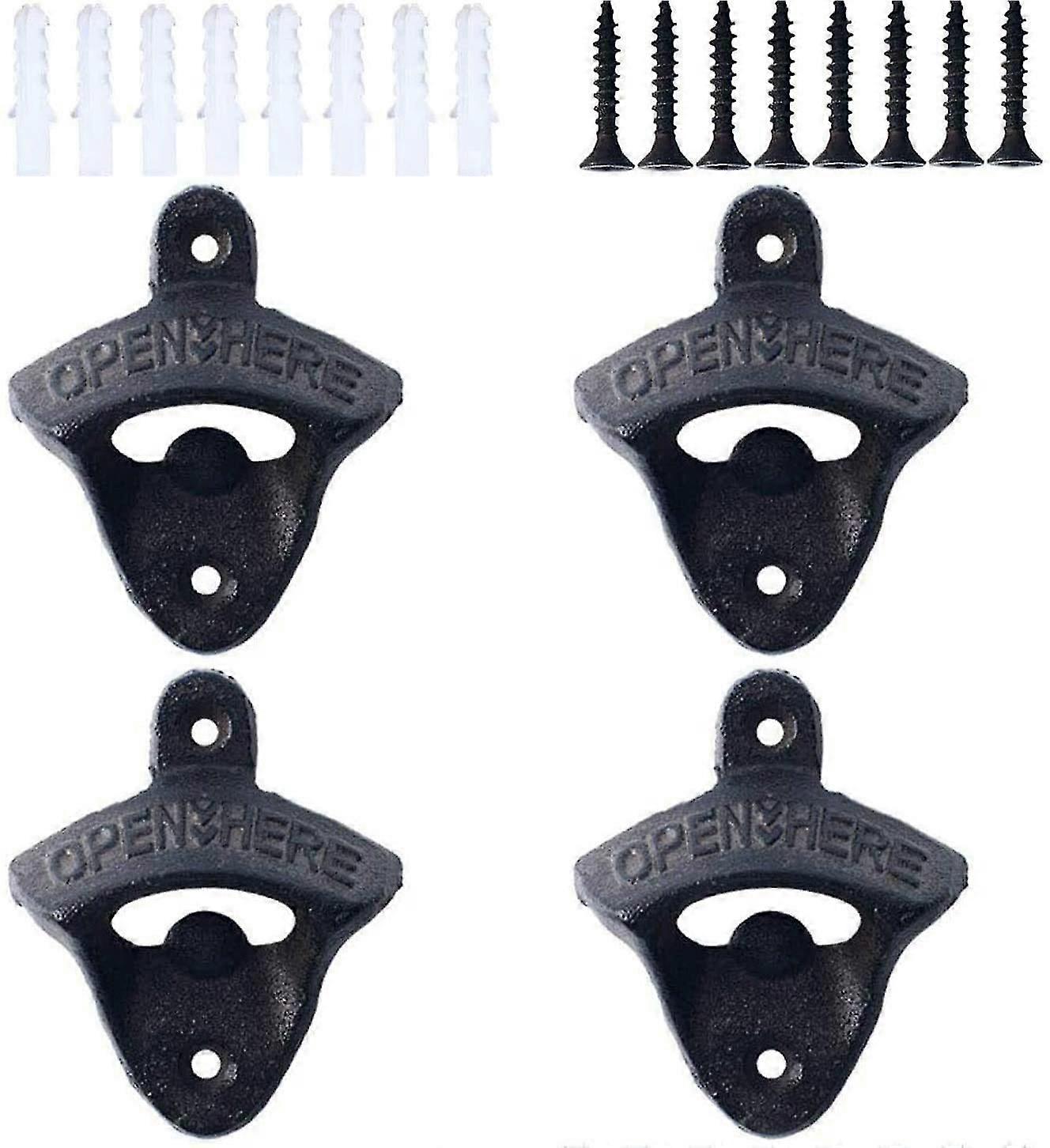 4pcs Wall Mounted Beer Bottle Opener Cast Iron Retro Style Gadget With Screws For Barkitchens & Vintage Rustic Bar