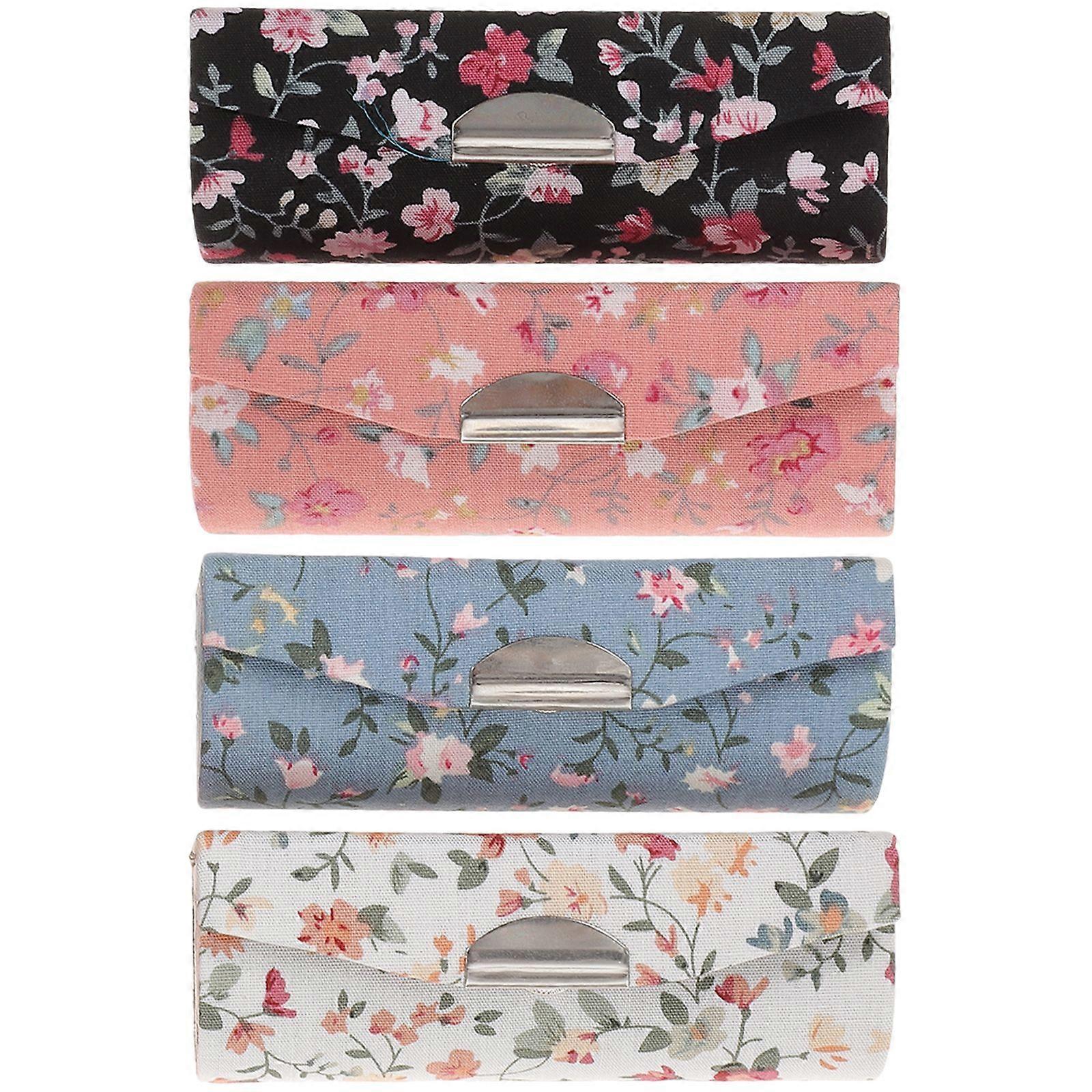 4PCS Embroider Lipstick Cosmetics Storage Box Holder Lip Gloss Makeup Organizing Bag Case (Black/White/Blue/Pink)