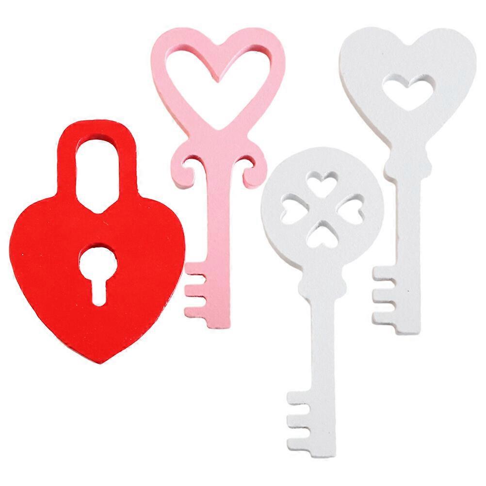 4pcs Wooden Heart Key Pendant Key Heart Style Hanging Ornament Valentine's Day Decoration