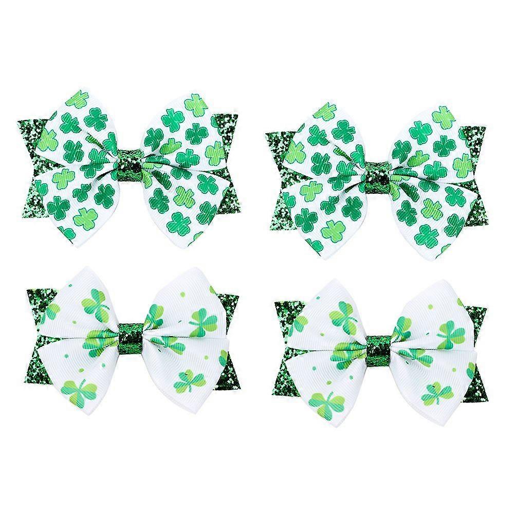 4pcs Bowknot Hairpins Clover Hair Bowknot Lovely St. Patrick's Day Hair Decor