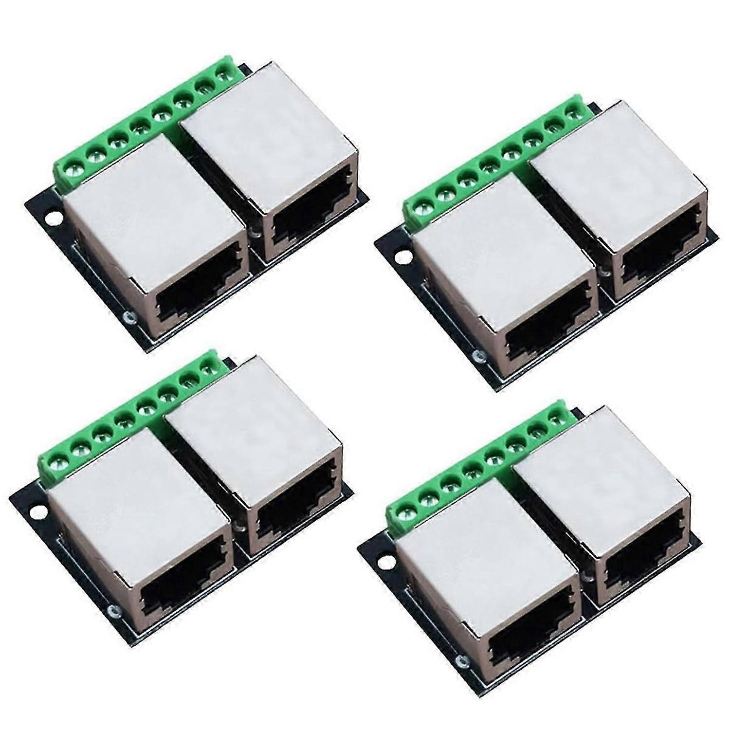 4PCS RJ45 Ethernet Dual Female Terminal Breakout Board,3.5mm Pitch Connector Board Shielded Network