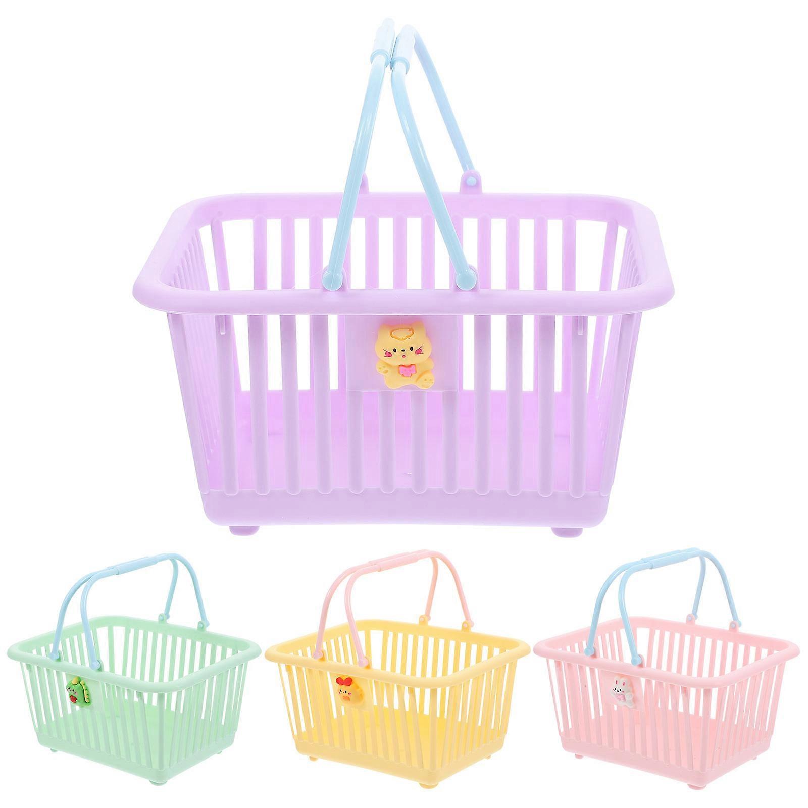 4pcs Multi-functional Plastic Basket Small Shopping Basket Adorable Kids Toy Storage Basket