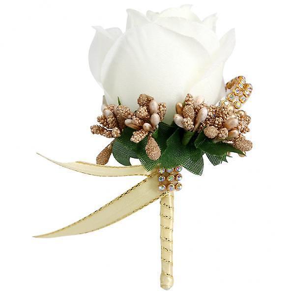 4xStimulation Rose Flower Brooch Pin Wedding Corsage Pin White and Gold