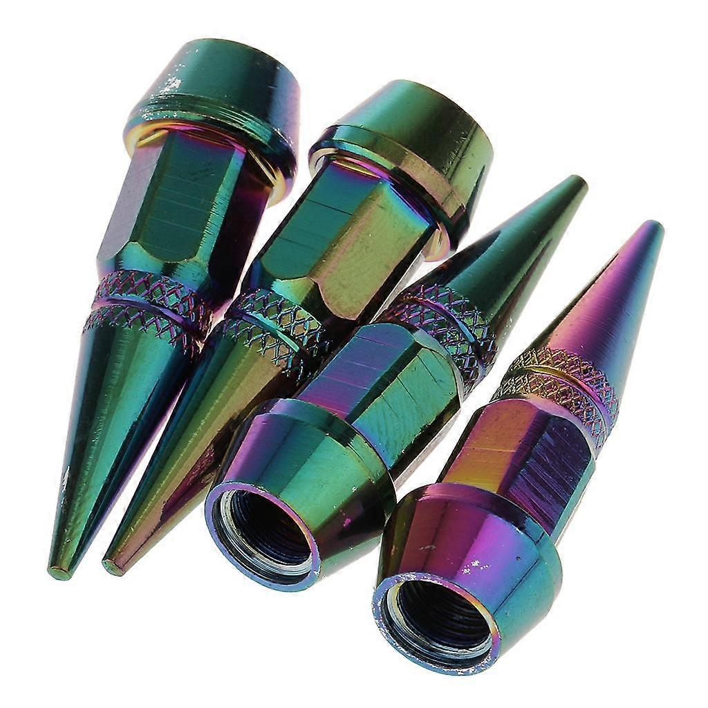 4x Long Spiked Valve Stem Caps Metal Thread Kit/Set For Tires Multicolor