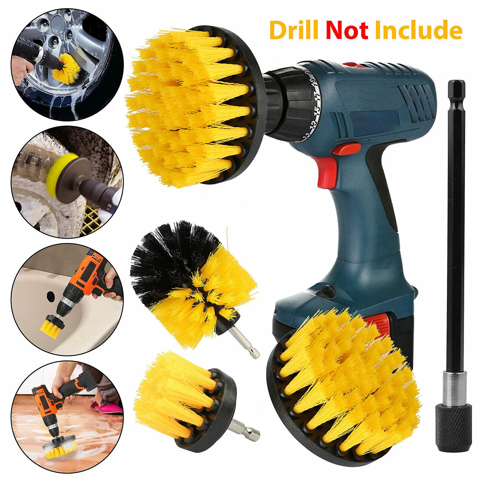4x Car Wash Brush Hard Bristle Drill Auto Scrubber Detailing Cleaning Tool Nylon