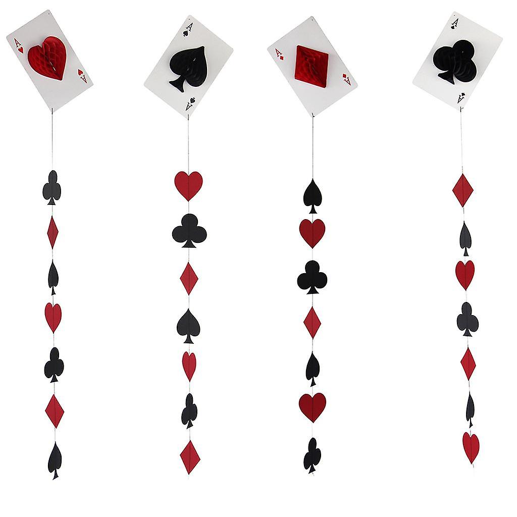 4x Casino Party Paper Poker Card Honeycomb Ball Garlands Hanging Decorations