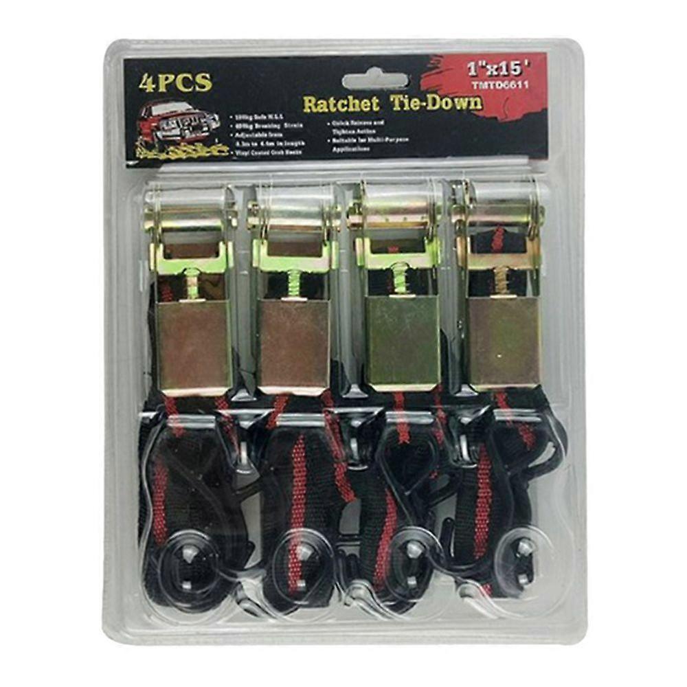 4x Car Tension Rope Tie Down Strap Ratchet Baggage Baggage Cargo Tie Down Black