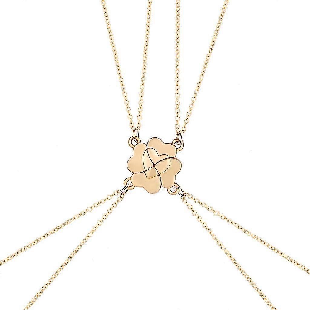 4x Four Leaf Clover Necklace Heart Pendant Necklace Forever Love Heart Lucky