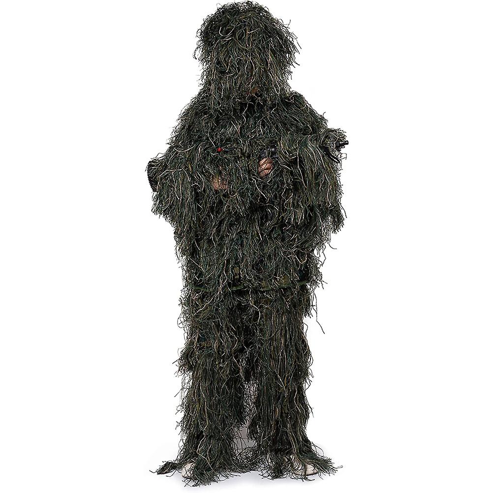 5 in 1 Ghillie Suit 3D Leaf Camo Clothing Suits Camouflage Apparel Including Jacket Pants Hood Carry Bag for Kids Jungle Photography Halloween