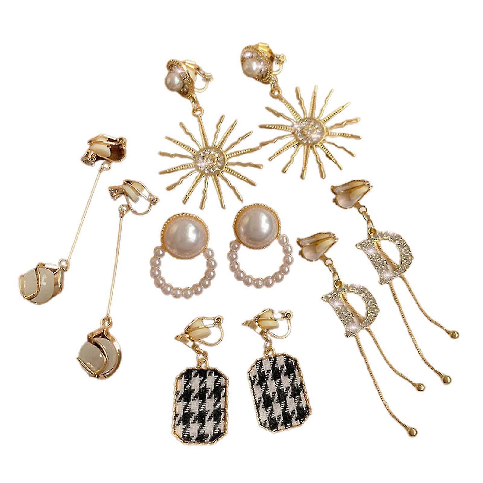 5 Pairs Dangle Earrings D Shape Tassels Jewelry Faux Pearls Rhonestones Drop Earrings for Wedding Party Banquet Prom