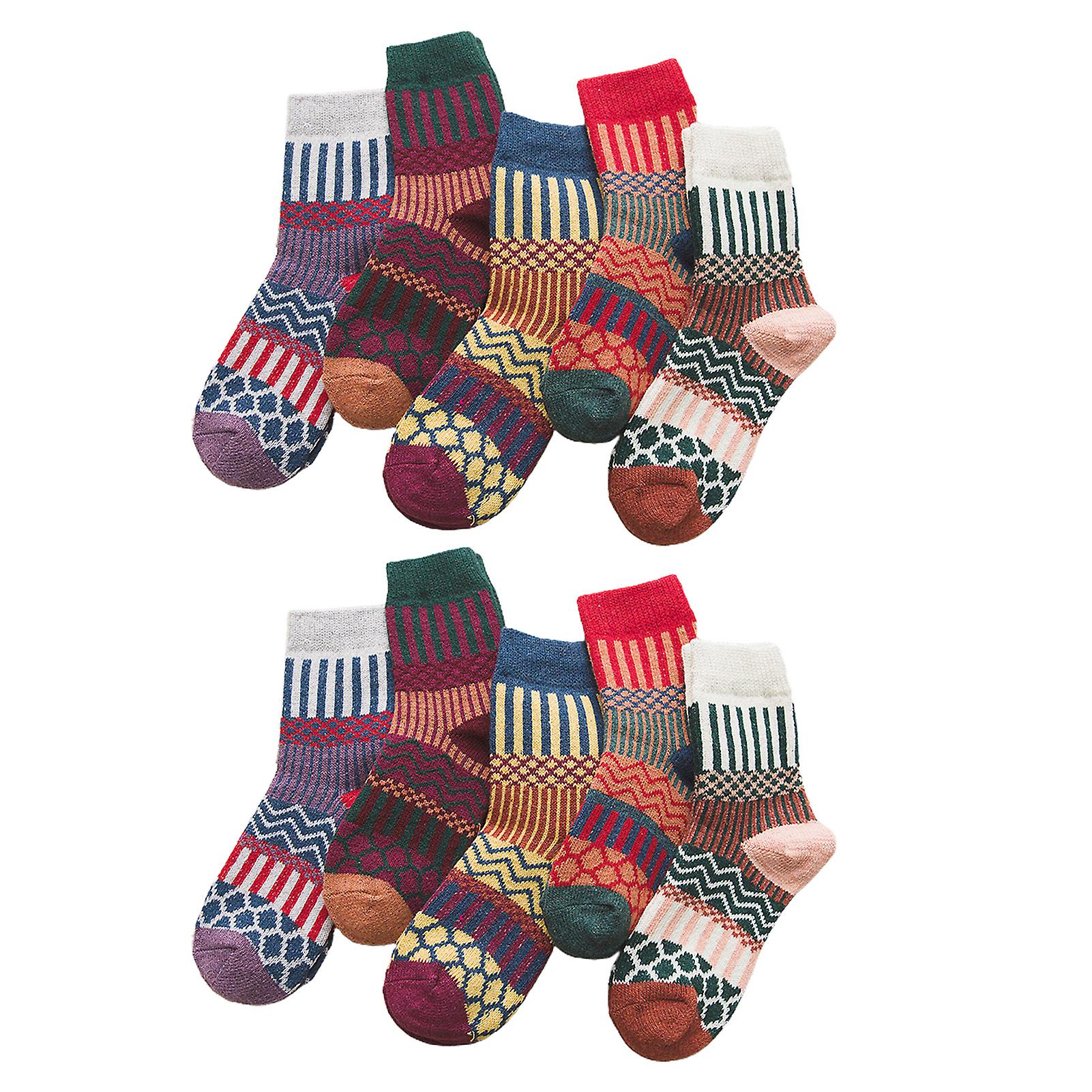 5 Pairs Middle Tube High Elastic Welts Women Socks Breathable Faux Wool Straight Ripple Print Crew Socks for Fall Winter