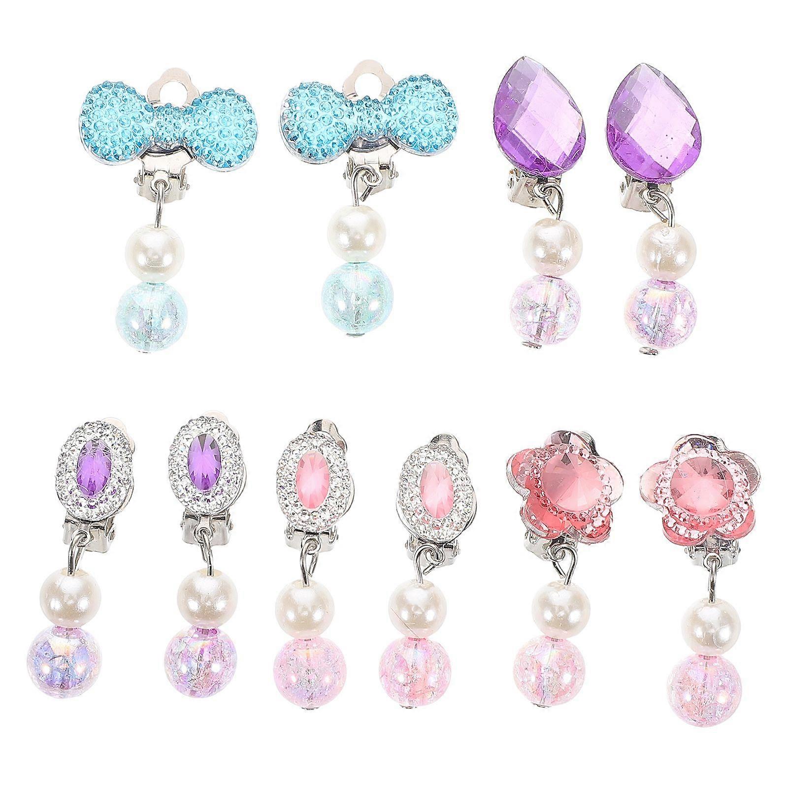 5 Pairs Clip on Earrings Little Girl Party Favor Princess Heart Flower Clip on Earrings Dress up Pretend Play Earrings for Little Girl Kids Toddlers J