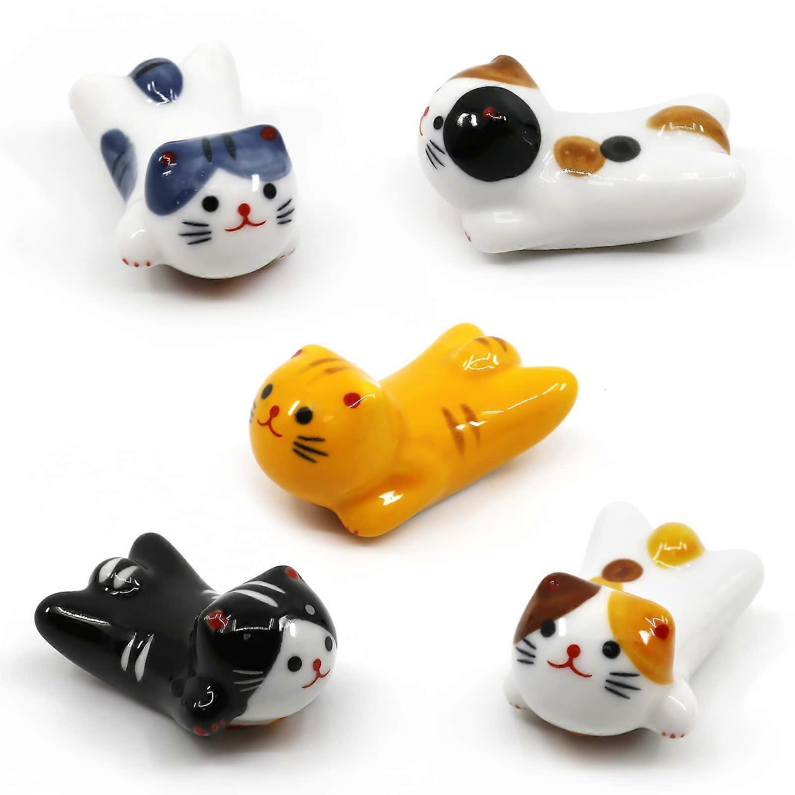 5 Pack Cat Chopstick Rests & Holders, Japanese Style Porcelain Cute Lucky Cat Ceramic Chopsticks Holder