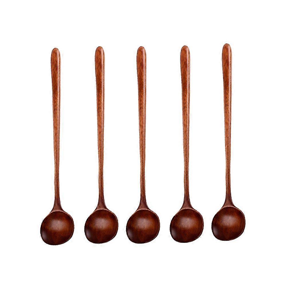 5 Pieces Korean Style Natural Wood Long Handle Spoons for Soup Cooking Stirrer Kitchen Tools
