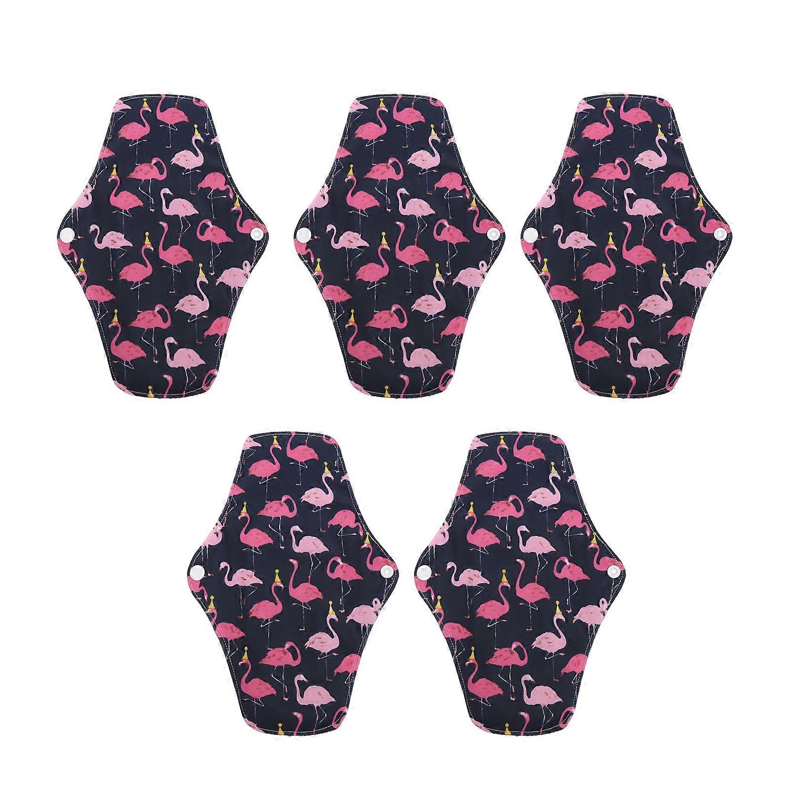 5pcs Bamboo Charcoal Cloth Menstrual Super Absorbent Floral Printed Reusable Sanitary Pads for Women M Size