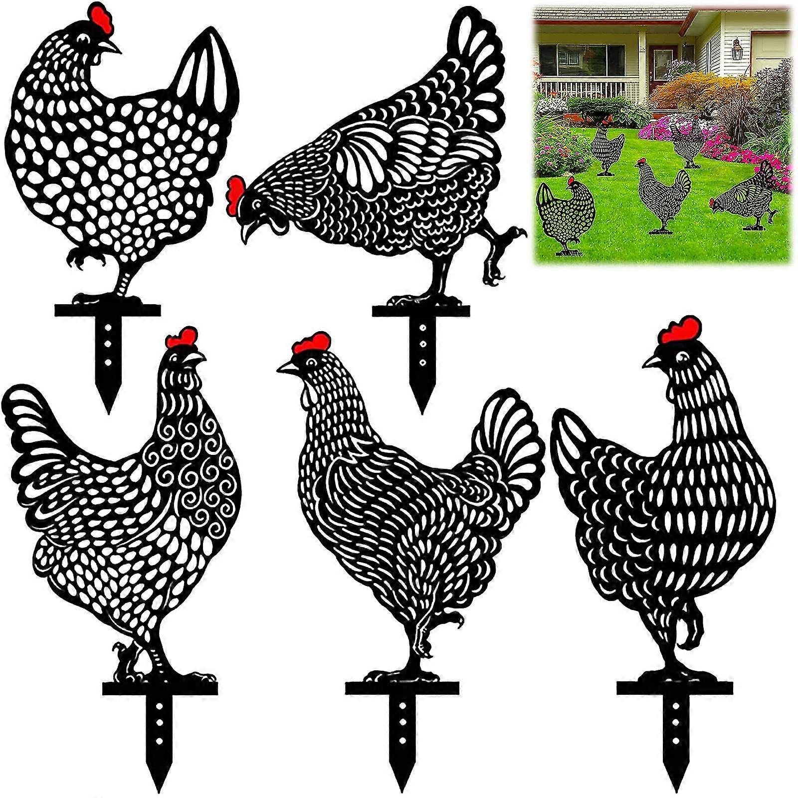 5pcs Garden Chicken Decoration, Realistic Hen, Chicken Farm Art, Realistic Acrylic Hollow Black Chicken Card Garden Decoration, Outdoor Lawn Decoratio