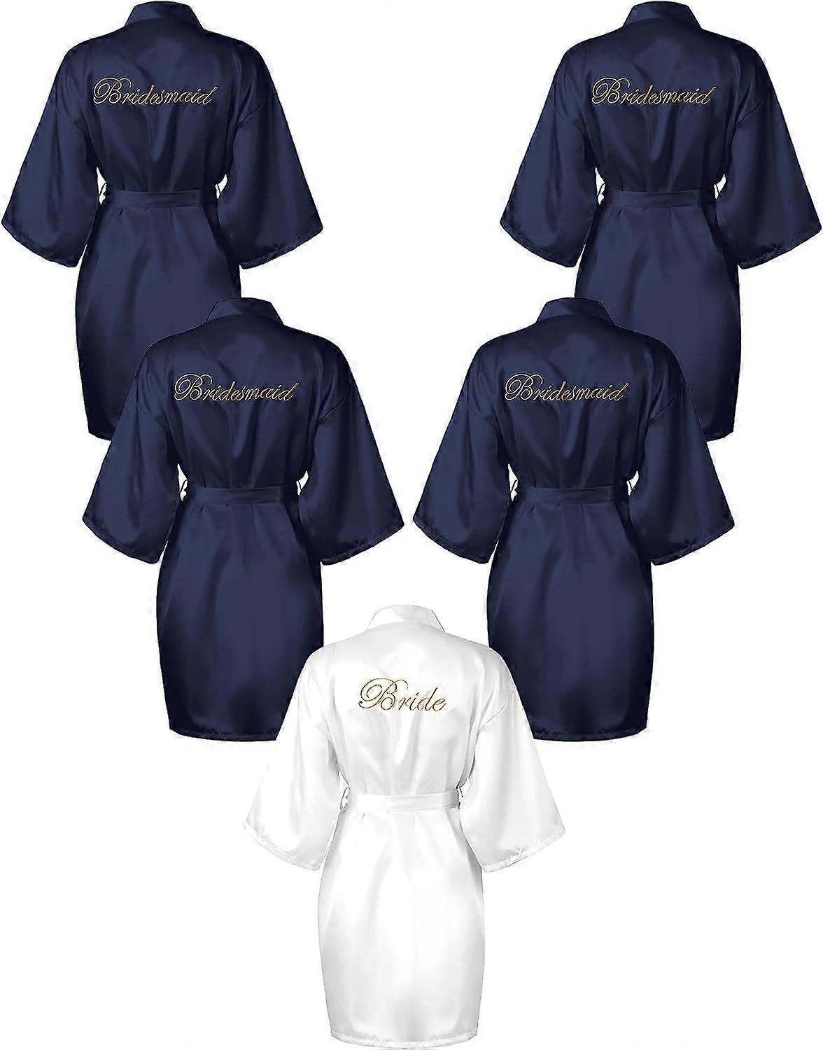 5 Pcs Kimono Robe for Bridesmaid Bride Women Wedding Party Getting Ready Short Robe Bride Robe Embroidered Bridal Party Robes