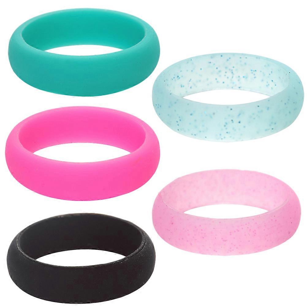 5pcs Food Grade Silicone Finger Rings, Lightweight Stretchy Glitter Design, Assorted Styles & Colors, Unique Jewelry for Men Women, Casual Daily Wear