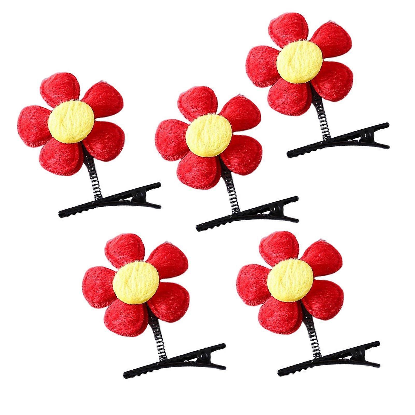 5Pcs Kids Funny Spring Design Hair Pin Double Sided Flower Decor Hair Clip Anti-slip Rust-resistant Hairpin Hair Accessory