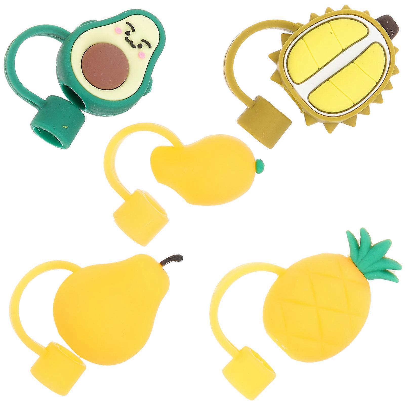 5pcs Adorable Kawaii Straw Covers with Avocado Designs Summer Beach Party Kitchen Accessories, Cute Straw Protectors for Drinks