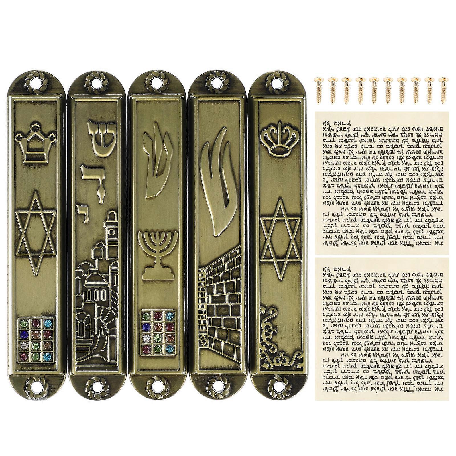 5pcs Vintage Metal Mezuzah Decorative Plaques for Home Blessing Religious Wall Decor for Catholics and Believers