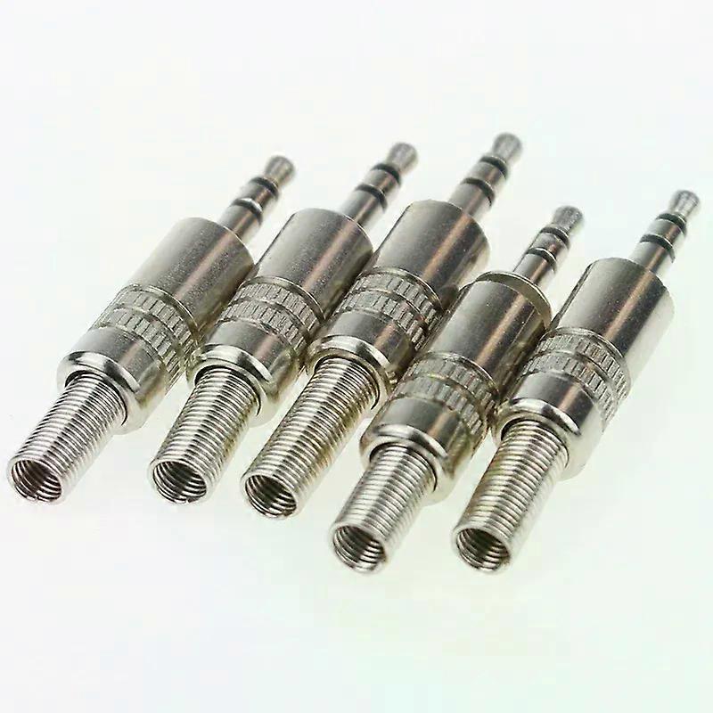 5 pcs 35mm 3-Pole Stereo Metal Plug Connector 35 Plug & Jack Adapter With Soldering Wire Terminals 35mm Stereo Plug