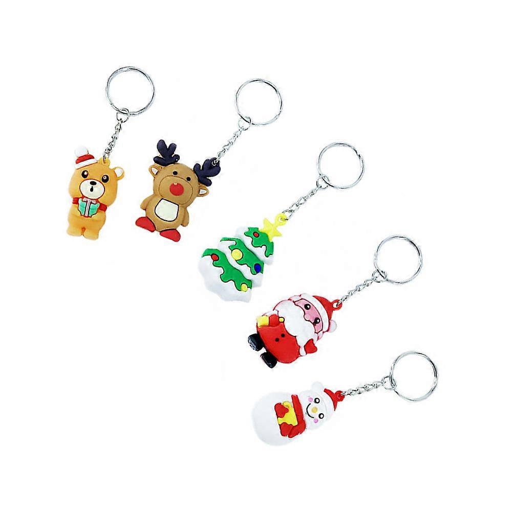 Creative Cartoon Keychain 5Pcs Christmas Pendant Key Rings Elk Santa Snowman Bear Decorative Accessory