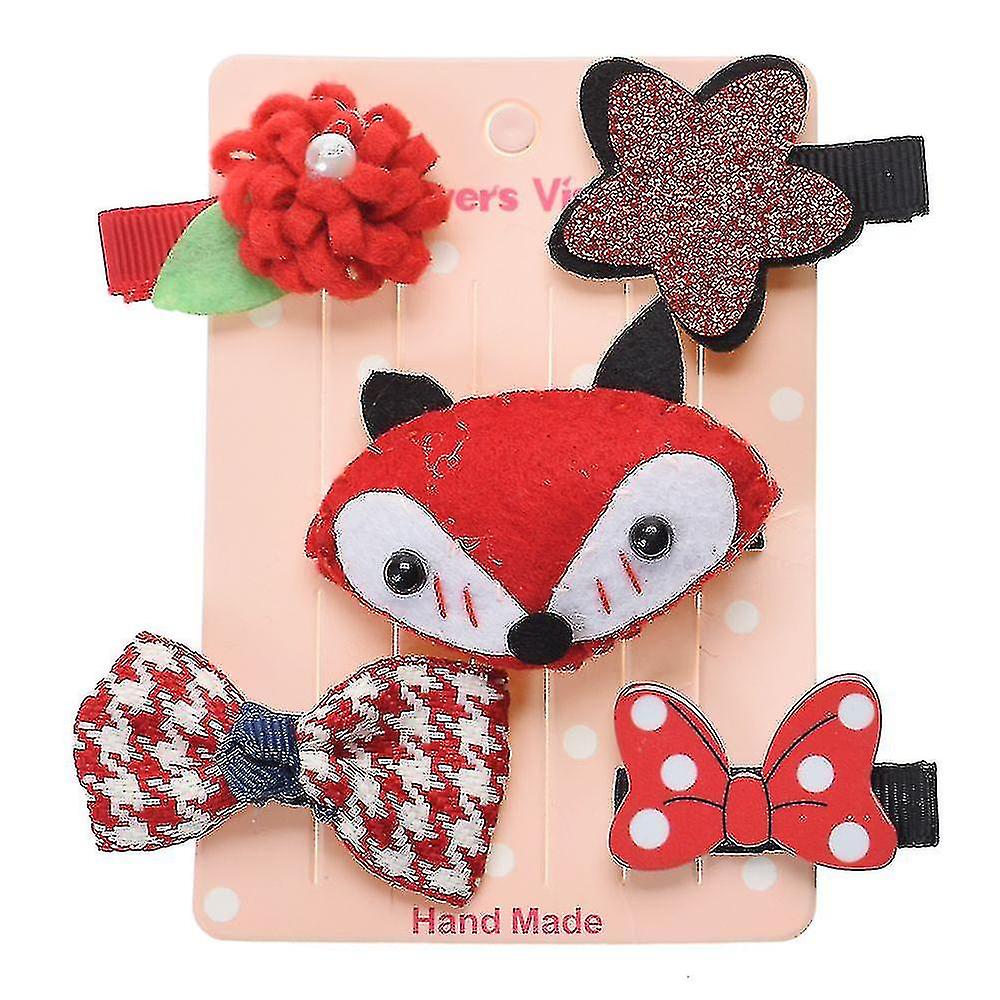 5pcs/set Korean children's hair accessories set cartoon animal hair clips all-inclusive cloth card baby safety clip